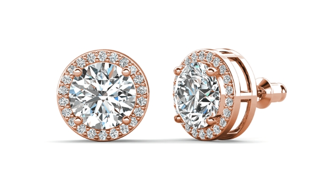 Cate & Chloe Ariel 18k Rose Gold Plated Halo Stud Earrings with Simulated Diamonds, Gift for Women +