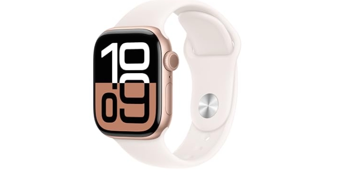 Apple Watch Series 10 [GPS 42mm case] Smartwatch with Rose Gold Aluminium Case with Light Blush Sport Band - S/M. Fitness Tracker, ECG App, Always-On Retina Display, Water Resistant +
