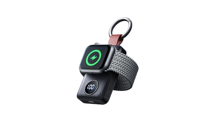JOYROOM Portable 2000mAh Wireless Charger Compatible for Apple Watch Series 10/9/8/7/6/5/4/3/2/1/SE/UItra 2/Ultra, Compact Magnetic iWatch Charger Keychain Style Travel Essentials (Black) +