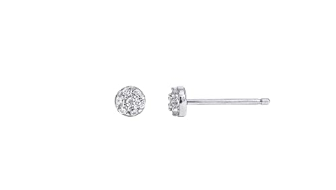 Amazon Essentials Rhodium Plated Sterling Silver Small Dainty Cubic Zirconia Pave Disc Earrings, Silver +