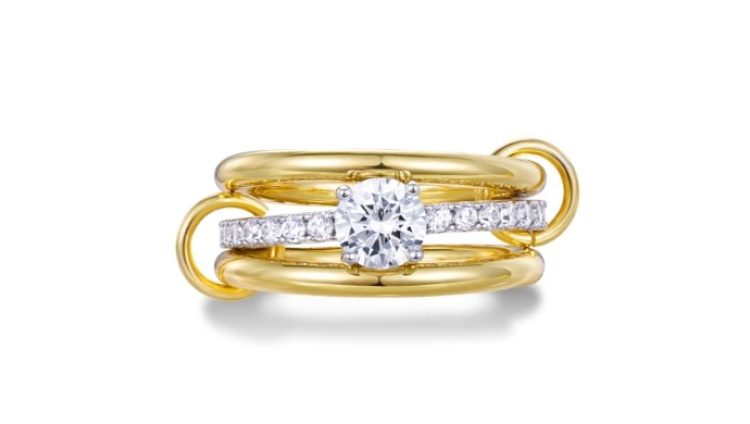 KissYan Stackable Rings for Women, 14k Gold Plate Interlocked Multi Ring Set Dainty Pave CZ Personalized Fashion Two-Toned Mixed Metals Stacking Jewelry Trendy Statement Gift (Style 3, Size 7) +