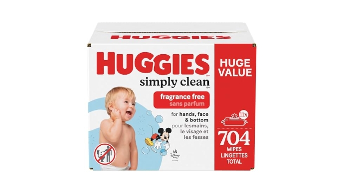 Huggies Simply Clean Unscented Baby Diaper Wipes, 11 Flip-Top Packs (704 Wipes Total), Packaging May Vary +
