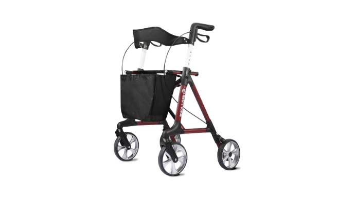 Foldable Rollator Walkers with Seat for Seniors, 8'' All Terrain Big Wheels, 330 lb. Weight Capacity, Adjustable Handles Height, Lightweight Rolling Walker, Red - Ideal for Daily Errands, Park Strolls +