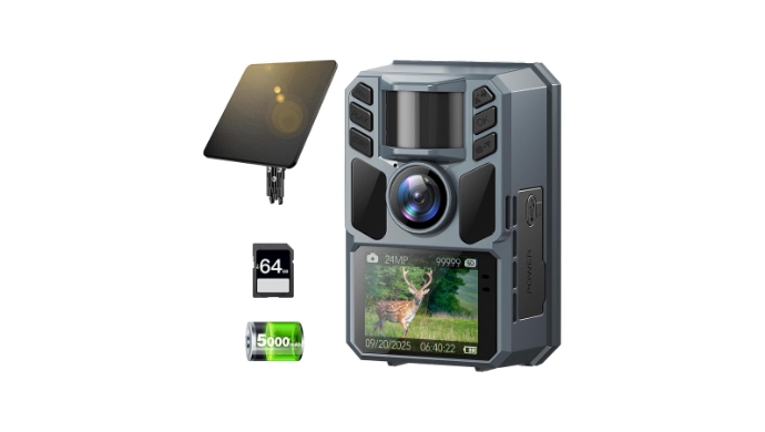FKPCAM Trail Camera 4K 64MP with 5000mAh Rechargeable Battery 64GB Micro Memory Card IP67 Waterproof, Night Vision, Motion Activated, Solar Powered Wildlife Hunting Camera for Outdoo +
