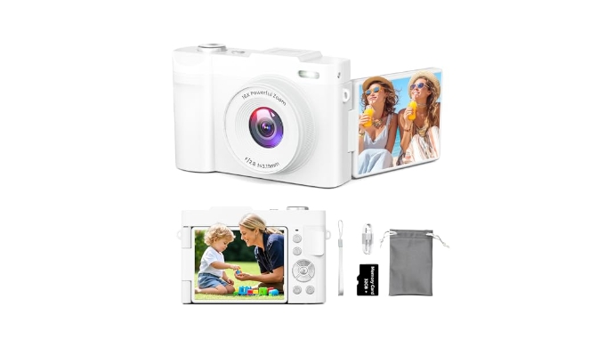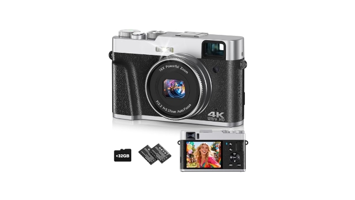 4K Digital Camera for Photography, Small Vlogging Camera with Flip Screen for YouTube, 50MP 16X Zoom, Portable Travel Cameras with 32GB SD Card for Beginners(White) +
