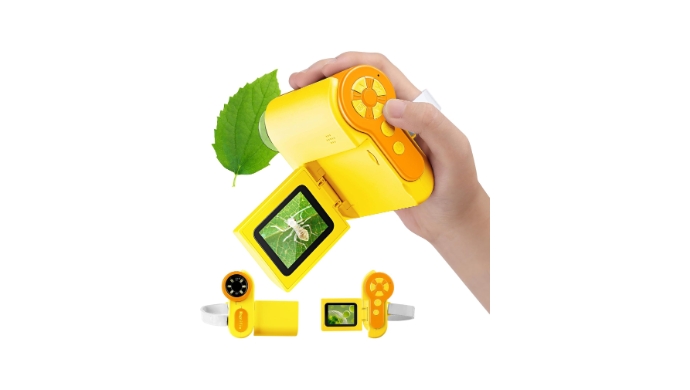 Barchrons 1000X Handheld Microscope for Kids, 4K 2.0" Screen Mini Pocket Microscope with 6 Adjustable LED Lights, Edu Science Birthday Christmas Gifts for Kids Ages 8-12, 32G SD Card Included - Yellow +