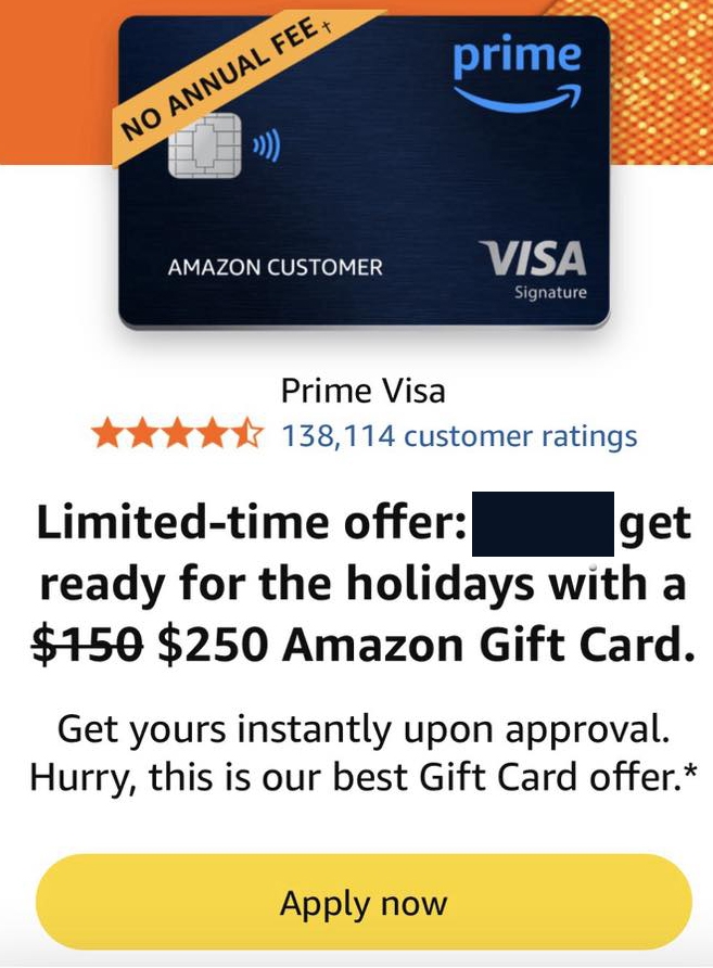 Amazon Gift Card instantly upon approval* (Prime Members)