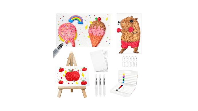 36pcs Magic Foam Texture Painting Kit, Magic 3D Puffy Paint Including 28 Pcs Foam Texture Paper, 12 Colors Brush Tip Acrylic Paint Markers, 3D Art Foam Painting Kit for Kids +