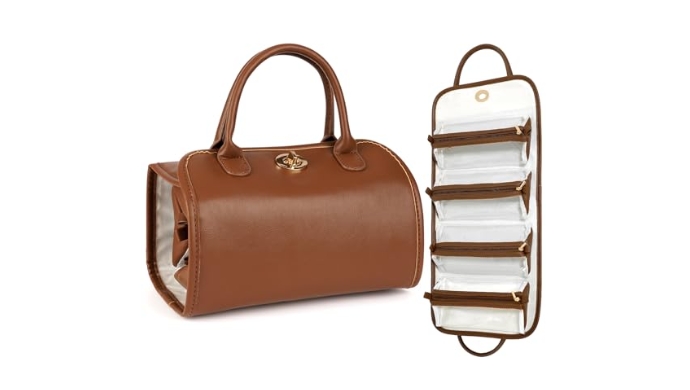 Travel Makeup Organizer Bag, Foldable Toiletry Bag with Detachable Pouches, Large Capacity 4-in-1 Roll-Up Cosmetic Storage with Handle for Women +