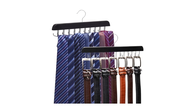 Sywxary Wooden Tie Rack & Belt Holder 2 Pack, 20-Hook Necktie Hanger & 14-Hook Belt Organizer, Space Saving Multi Functional Closet Storage for Men +