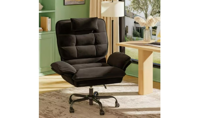 Bestier - Velvet Seat High-Back Ergonomic Office Chair with Adjustable Padded Arms, Swivel Chair with Padded Headrest
