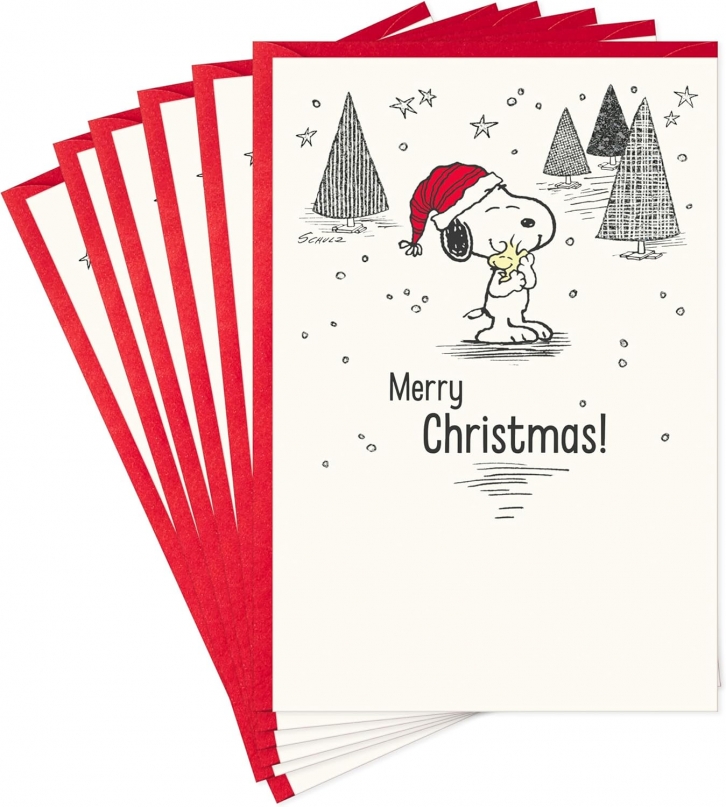 6 Hallmark Peanuts Snoopy and Woodstock Christmas Cards +FSSS