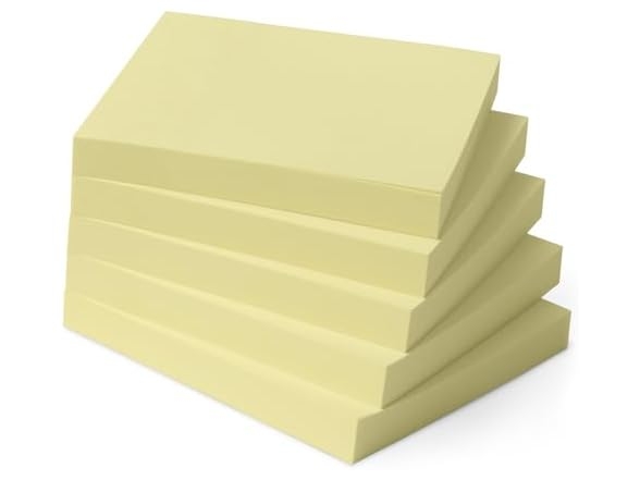 Amazon Basics Square Sticky Notes, Self-Stick Pads, Pack of 5, 3 x 3 inches, Yellow