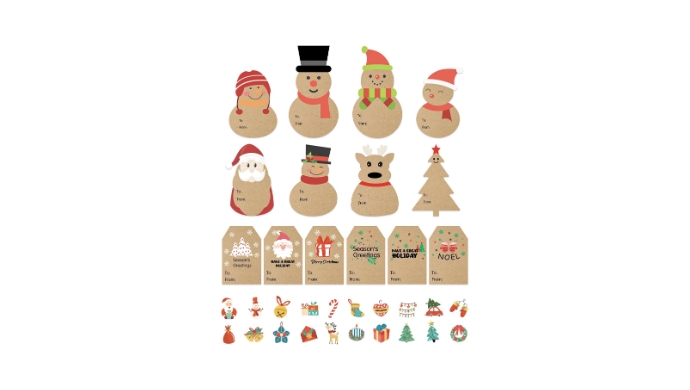 520Tags Christmas Gift Tags Stickers, Self-Adhesive Christmas Name Tags, Vintage Christmas Labels for Presents, Holiday Cute Kraft Xmas Kids Stickers for Boxes, Envelopes,Wrapping Paper,Packages,Cards +