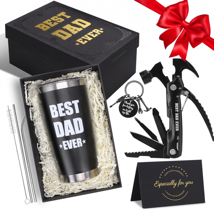 Best Dad Ever Gifts from Daughter - Unique Birthday Fathers Day Christmas Gifts Basket for Dad Tumbler Hammer Multitool