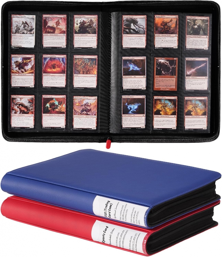 ProCase 9 Pocket Trading Card Binder with Side Label; 2Pack 720 Double Sided Pocket PU Collection Binder; Premium Zipper Card Collection binder Album Folder for Sports Cards/TCG/MTG/PKM -Red+Navy