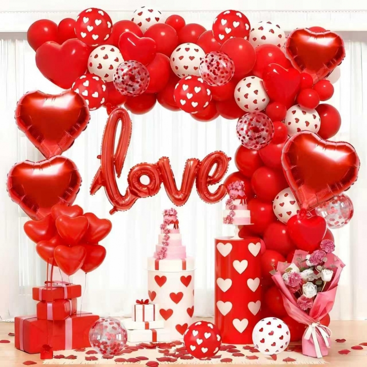 117pcs Valentines Day Balloon Arch Kit and 1000pcs red rose petals, Red Confetti Heart Balloons Love Foil Balloons for Valentines Day Balloon Decorations Engagement Wedding Party Supplies