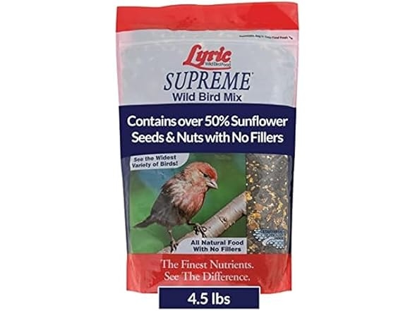 Lyric Supreme Wild Bird Seed - Wild Bird Food Mix with Nuts & Sunflower Seeds for Outside Feeders - Attracts Many Beautiful Songbirds - 4.5 lb bag
