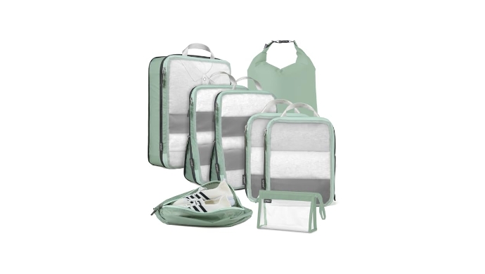 Cipway Compression Packing Cubes Mesh, Lightweight Luggage Organizer Bags with Laundry Bag,Toiletries Bag and Shoe Bag, Travel Essentials for Carry on Suitcase(8 Pcs,Sage Green) +
