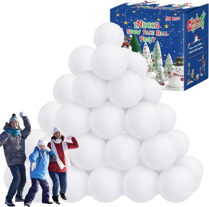 36 PCS Snow Balls for Kids Indoor, Plush Indoor Snow Ball Fight Set, Soft Fake Snow Balls Artificial Snow Balls Toys Bulk for Multiplayer Winter Throwing Game Xmas Present Christmas Decorations, AC
