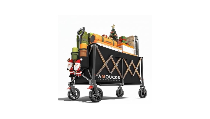 Wagons Carts Foldable, 350LBS Collapsible Wagon with 360° Rotating Wheels, Brakes, and Side Pocket, Large Capacity 160L Wagon Cart for Shopping, Park, Camping and Outdoor Use +