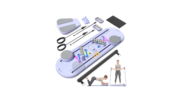 Pilates Board, Pilates Reformer Set, 15 in 1 Multi-Purpose Foldable Pilates Reformers Equipment, Portable Pilates Reformer Machine, Home Pilates Kit for Home Workout, Ab Pilates Board for Women +