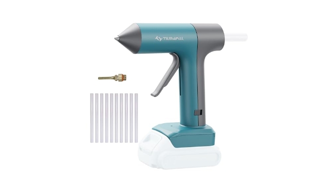 Tilswall Cordless Hot Glue Gun Compatible with Dewalt 18V/20V Battery, Full Size Glue Gun 90s Fast Preheating with 10PCS 0.43'' Glue Sticks for Crafting, DIY and Home Repairs(Battery Not Included) +