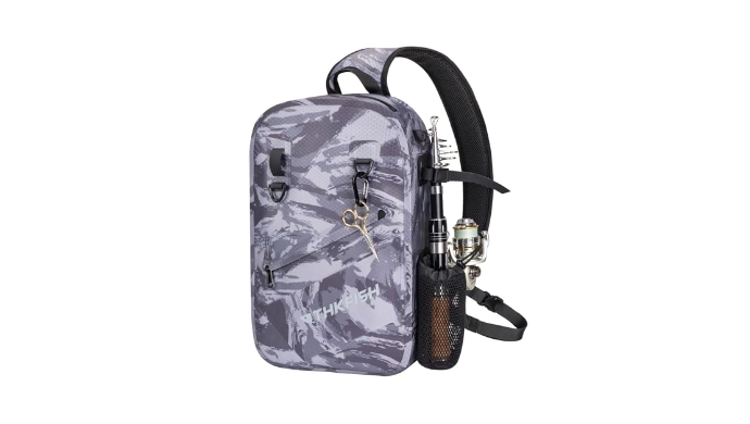 THKFISH IPX8 Waterproof Fishing Backpack with Rod Holder, Lightweight Fishing Sling Bag, Move Freely Fish Gifts for Men +