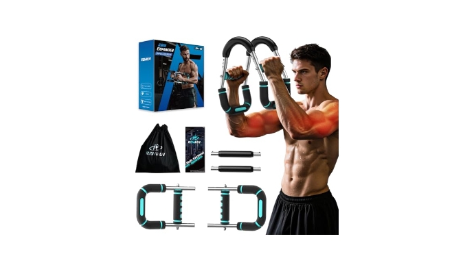RENRUI Twister Arm Trainer, Adjustable 5 Resistance Levels (40-130 lbs) Chest & Arm Workout Equipment for Men & Women, Ergonomic Home Gym Strength Trainer with Anti-Slip Handles & Carry Bag (Blue) +