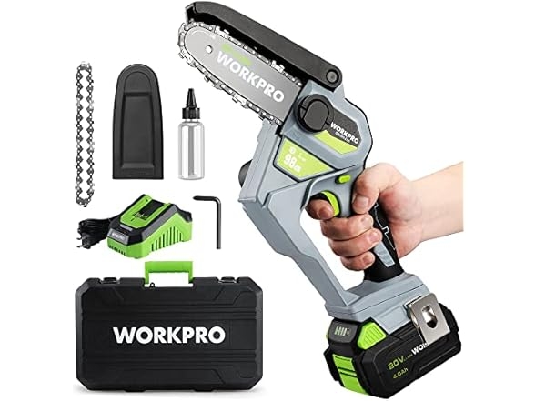 WORKPRO Mini Chainsaw, 6.3" Brushless Cordless Power Compact Chain Saw with 4.0Ah Battery, 20V One-Hand Operated Portable Wood Saw with Replacement Chain