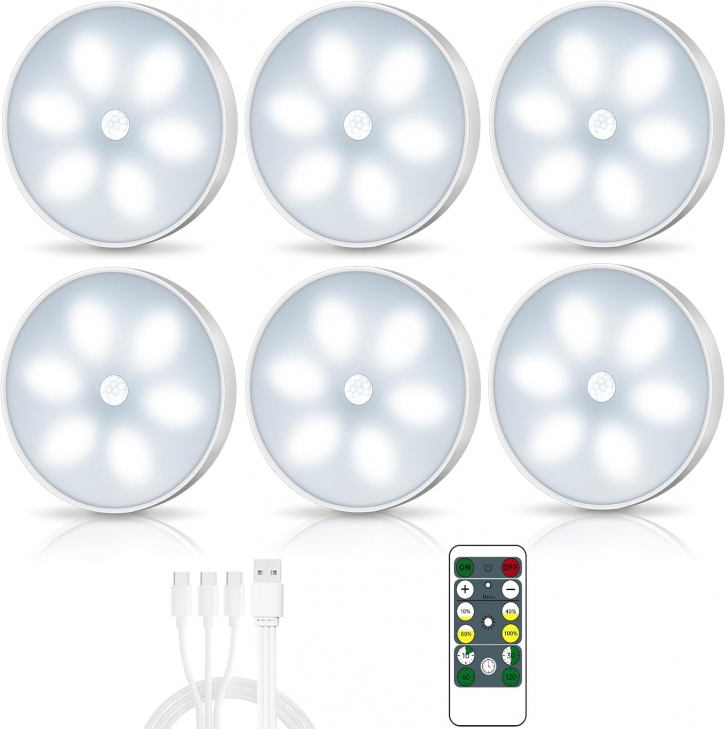 LED Closet Lights Motion Sensor Puck Light 6-Pack +