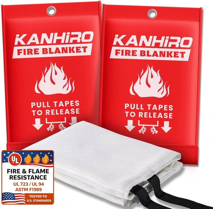 KANHIRO Fire Blanket Emergency for Home Kitchen - Fiberglass Fire Suppression Blanket Great for School, Fireplace, Grill, Car, Office, Warehouse (2 Pack, 39 in X 39 in)