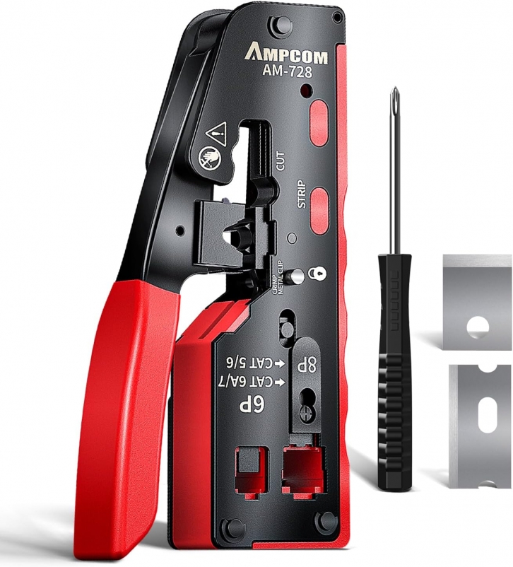 AMPCOM Pass Through RJ45 Crimp Tool AC