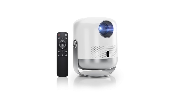 FXiaoy Movie Projector with WiFi 6 and Bluetooth, with Built-in Speaker | 4K Decoding and 1080P Output | One-Touch Focus | 360° Rotation | Portable Projector, Compatible with IPhone/Android/TV stick +