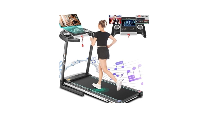 SYTIRY Treadmills for Home with TV Screen and WiFi,Smart Foldable Treadmill Machine,3D Virtual Sports Scene,HiFi Speakers,Popular APP for Social Networking,Video,and Search,Walking Treadmill +