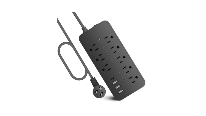 Extension Cord Surge Protector Power Strip - Flat Plug Braided Power Bar with 8 Widely Outlets and 4 USB Ports(1 USB C), Multi Plug Wall Mount Desk USB Charging Station for Home Office +
