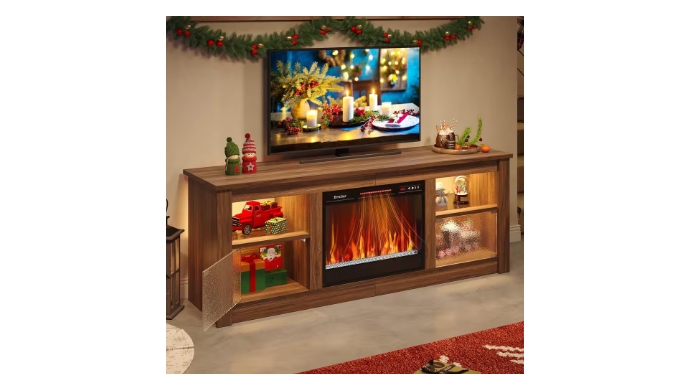 Bestier - 63 in. Freestanding Media Console Electric Fireplace TV Stand Fits TV's Up to 70 in. with Cabinet in Walnut +
