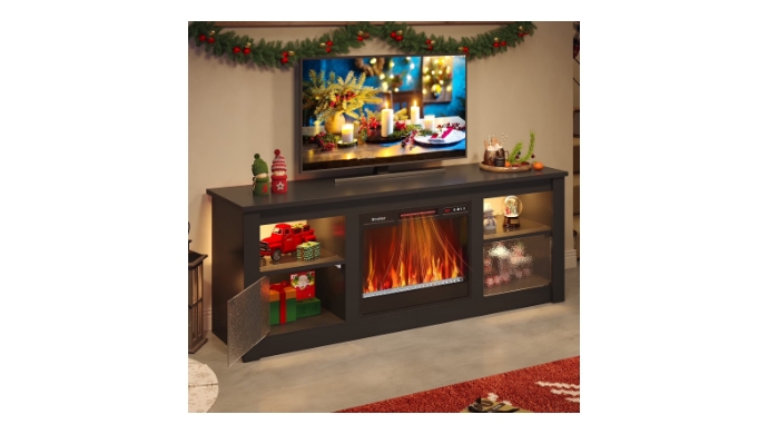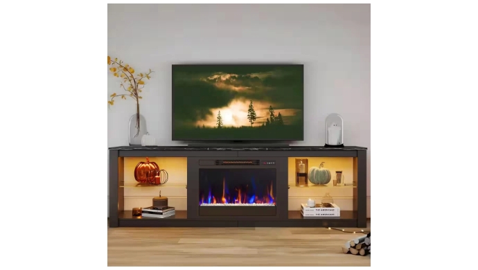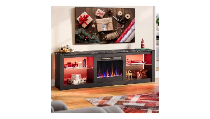70.8 in. Black TV Stand with Fireplace Fits TVs up to 75 in. LED Entertainment Center +