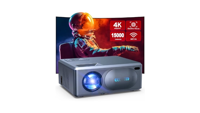 .5 [Electric Focus] 4K Projector with 5G WiFi Bluetooth, 15000L JOWLURK Projector, Outdoor Movie Projector, Home Mini Theater Portable Projector for iPhone/TV/Android Stick/HDMI/USB/Laptop/PS5/DVD (Grey) +