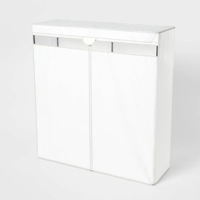 Product Description: You're sure to appreciate the convenience and organization this 60-Inch Wide Covered Storage Closet from Brightroom brings to your space. Made of a rust-resistant metal frame, this wide storage closet features one rod for organizing different hangers to help your space look and feel clean. Best of all, it features a white cover with a zipper on the front that helps keep the clothes hidden from view. Brightroom: See your space in a new light.