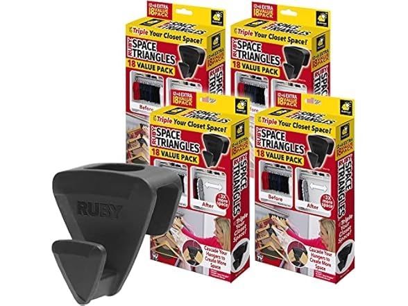 $10.75 New Ruby Space Triangles, 4 Pack, AS-SEEN-ON-TV Ultra- Premium Hanger Hooks Triple Closet Space 72 PC Value Pack, BlackWoot offers New Ruby Space Triangles, 4 Pack, AS-SEEN-ON-TV Ultra- Premium Hanger Hooks Triple Closet Space 72 PC Value Pack, Black for $10.75 (orig. $24.89). Free shipping for Prime Members.