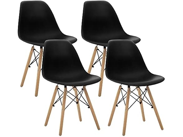 Woot offers CangLong Modern Mid-Century Shell Lounge Plastic Natural Wooden Legs for Kitchen, Dining, Bedroom, Living Room Side Chairs, Set of 4, Black for $54.99 + free shipping with Prime. Product Description:- Design: Ergonomic design of perfect height & curved seat supports user’s back well in sitting and leads to an easy conversations. Assembly required