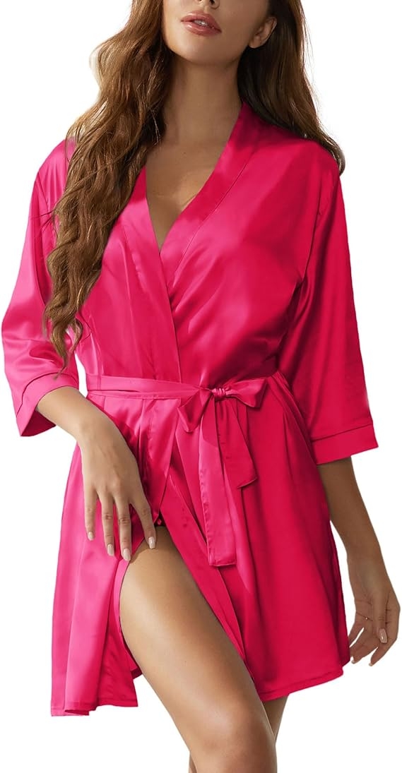 Amazon offers Senert Women's Silk Kimono Robe - Bride Bridesmaid Satin Sleepwear for Wedding Party - Short Silky Bathrobe (Various Colors) for + free shipping with Prime. #ad Product Description:- 【Material】The shorts robes for women made of silky-soft and lightweight satin fabric, breathable and smooth to the touch,makes you feel comfy all day.