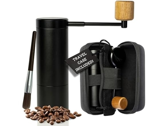 Woot offers Manual Coffee Grinder | Coffee Gift Set | 6 Star Conical Burr Coffee Grinder with Adjustable Settings | Coffee Bean Grinder with Travel Case | Portable Hand Coffee Grinder for $13.99 + free shipping with Prime. Product Description:- Precision Coffee Burr Grinder: Our superior 6-star manual burr provides you with fast and uniform grinding, ensuring a rich and flavorful coffee experience in record time. This adjustable manual coffee bean grinder offers versatile grind options at your fingertips, from a fine espresso to coarse French press.