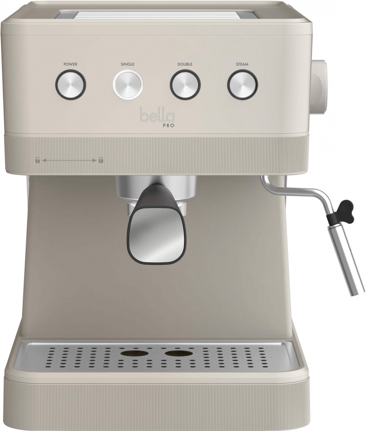Product Description: Bring the coffee house home with the bella PRO Barista Elite Espresso Station with 20 Bars of High Pressure. Featuring a robust 20-bar high pressure pump, this machine guarantees consistently bold and flavorful espresso shots with perfect crema. You can also customize your brew with programmable options for single or double shots. A dual spout lets you prepare two cups at the same time. Craving a creamy cappuccino? Velvety latte? Use the integrated commercial-style steam wand to froth perfectly textured microfoam. Fancy an Americano? Use the steam wand to dispense hot water. Bonus: Comes with a heated top plate to keep your cups warm before you pour.