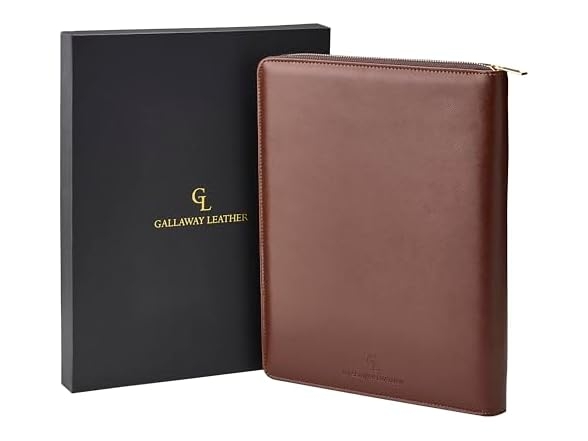$26.99 Gallaway Leather Genuine Leather Zippered Portfolio Organizer, Executive Business Binder Padfolio for Men and Women, Holder for Notebook Planner,Resume,Documents,Cards and iPad (Brown)Woot offers Gallaway Leather Genuine Leather Zippered Portfolio Organizer, Executive Business Binder Padfolio for Men and Women, Holder for Notebook Planner,Resume,Documents,Cards and iPad (Brown) for $26.99. Free shipping for Prime Members.