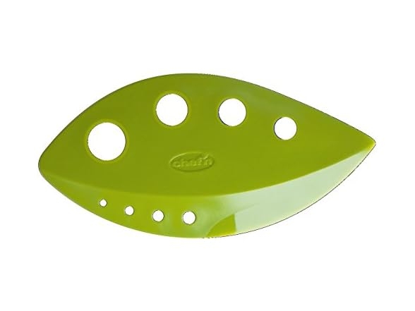 Product Description: De-Leaf in a flash with the Chef'n kale, chard, collard greens and herb stripper. Strip kale, collards, chard and herb leaves from stems in seconds with this beautifully simple kitchen tool. This leaf-shaped device works well with woody herbs like oregano, rosemary, thyme, tarragon and is perfect for making kale chips and other healthy snacks. The hand held design is easy to use, just insert the stem and pull through the hole. Top rack dishwasher safe. Choose smart, easy-to-use kitchen utensils that are built on tasteful design, new technologies, and the trusted reputation of Chef'n.
