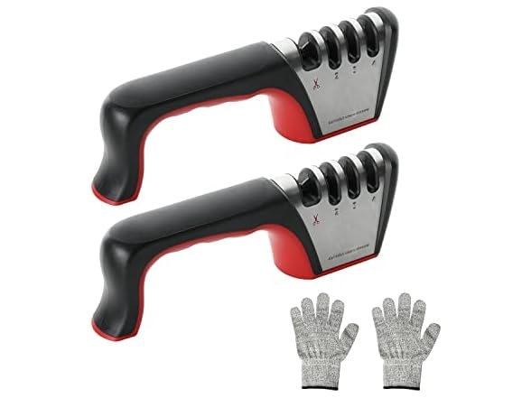Woot offers YSSOA 2 Pack 4-in-1 Kitchen Knife Sharpener 4 Stage Knife Scissor Sharpener with a Pair of Cut-Resistant Glove to Repair, Restore, Sharp, Polish Blades for $5.99 free shipping with Prime. Product Description: - High quality knife sharpener: The knife sharpener consists of ABS