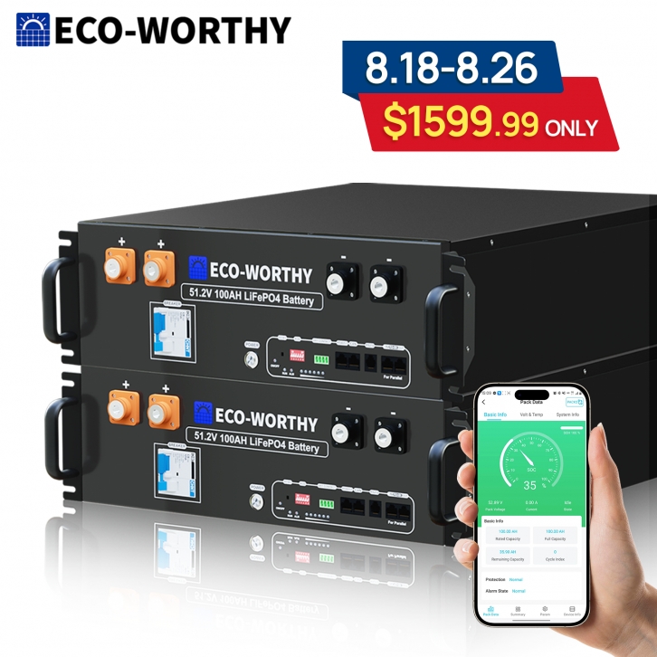 Ebay offers ECO-WORTHY 2Pack 48V 100AH LiFePO4 Lithium Battery 3U Server Rack V3 Version for $1,599.99 (reg. $1,999.99) after code with free shipping. Apply Code: ECOWORTHY20OFF Product Description: - [Real-time Battery Monitoring] ECO-WORTHY