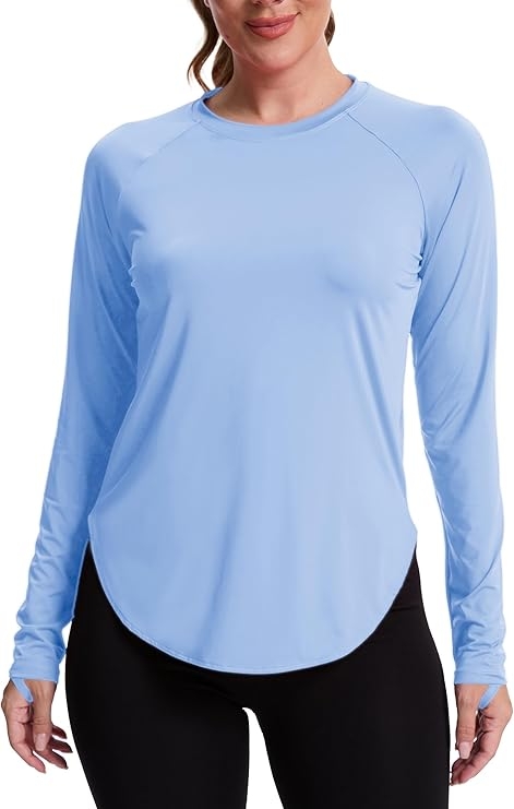 Amazon offers Women's Sun Shirt UPF 50+ Long Sleeve Workout Tops Running Hiking UV Protection Shirts Quick Dry Outdoor Clothing for + free shipping with Prime. #ad Note: Price varies by size and/or color! Product Description:- [Breathable & Soft] This ultra-soft, breathable, and lightweight running shirt is made of 86% Polyamide and 14% Elastane. The highly stretchy fabric is suitable for women of different body types and is a wardrobe essential for all seasons.